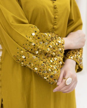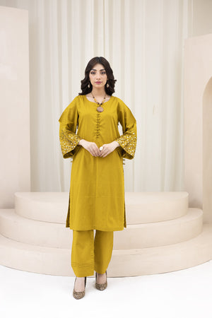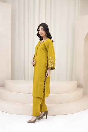 Add a warm, refreshing touch to your summer wardrobe with this stylish 2-piece kurta set in a rich autumn gold hue. Perfect for daily wear, it offers comfort without compromising on elegance. Product Highlights: