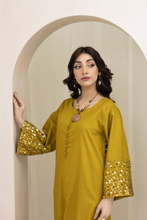 2167 – Gold 2 Piece Embellished Cotton Lawn Suit