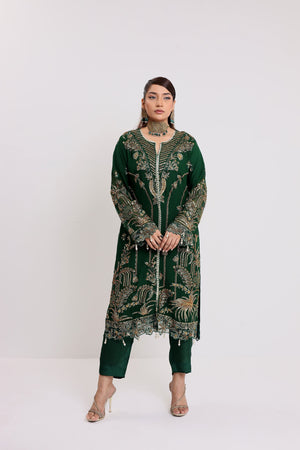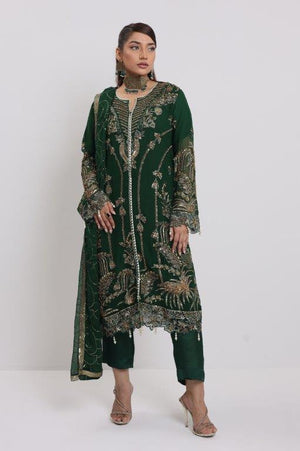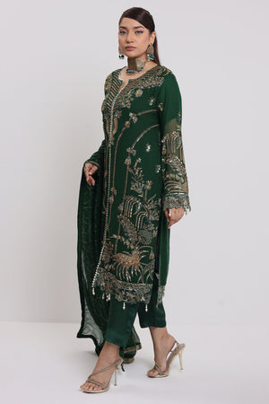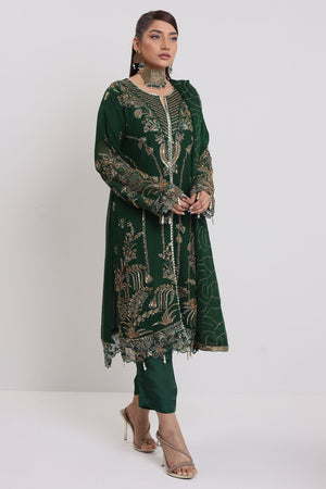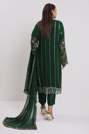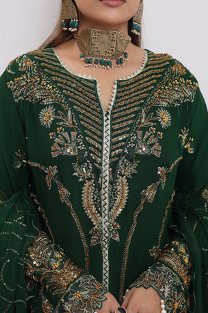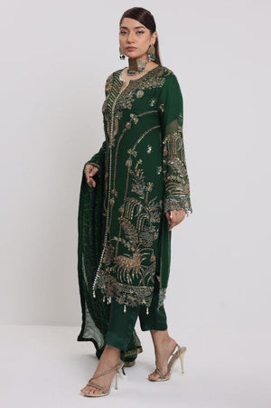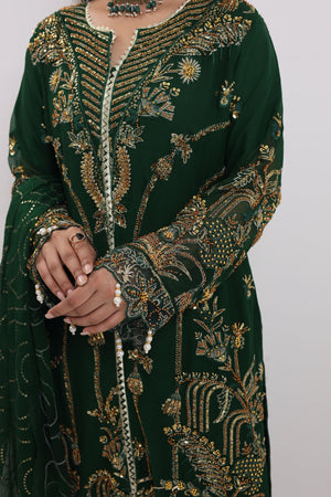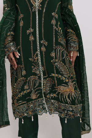 2175-A DARK FOREST – Luxurious Embroidered & Embellished Chiffon Ensemble