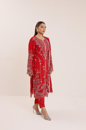 2175-B SCARLET – Embroidered & Embellished Chiffon Ensemble