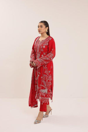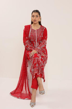 🔥 Exude timeless elegance with SCARLET, a stunning embroidered and embellished chiffon outfit crafted for those who love luxury and sophistication. The rich embroidery and delicate embellishments add a touch of grandeur, making it a perfect choice for festive occasions and evening soirées.