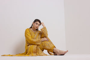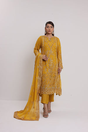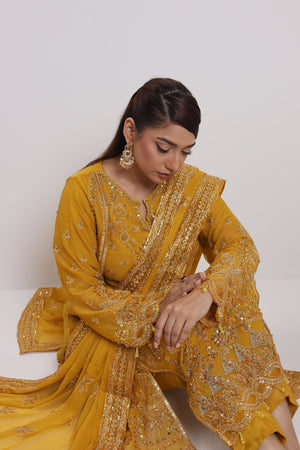 2176-SUNGLOW – Radiant Embroidered & Embellished Chiffon Ensemble