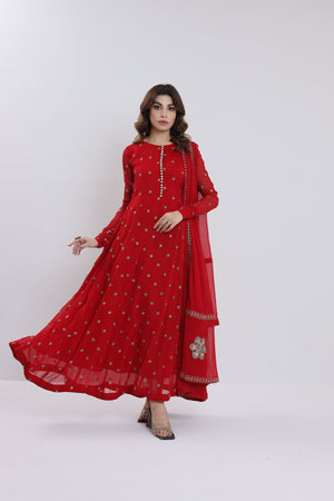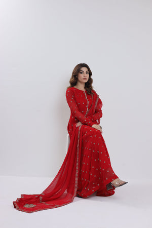 Step into timeless elegance with this beautifully crafted 3-piece Maroon Set, designed for festive and formal occasions. The flowing chiffon silhouette, detailed with intricate embroidery, is paired with a matching chiffon dupatta and inner slip for a complete, graceful look.