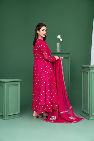 2178 – Maroon 3 Piece Embroidered Chiffon Suit