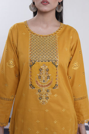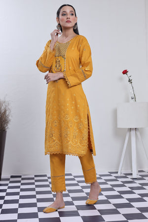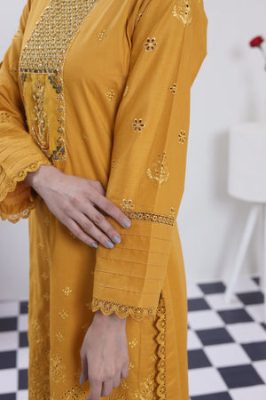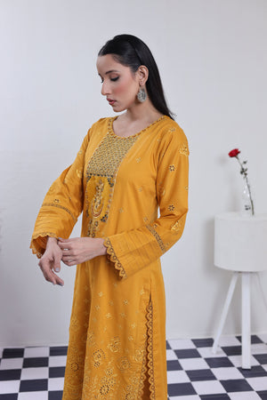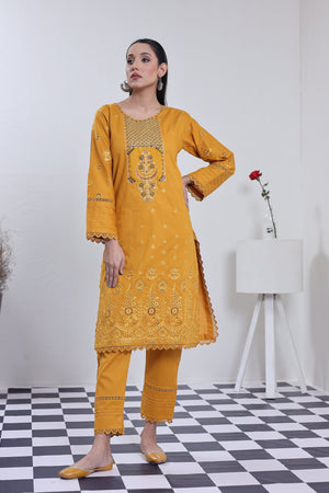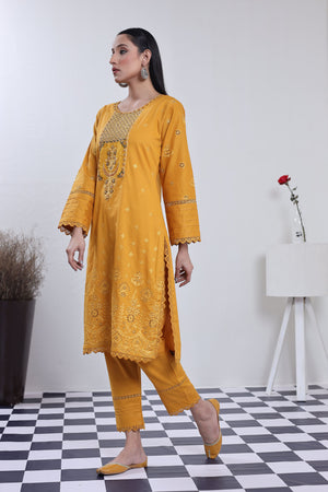 2198- Golden 2 piece embroidered Cotton lawn suit