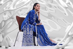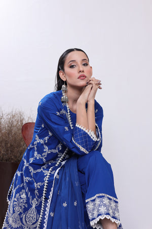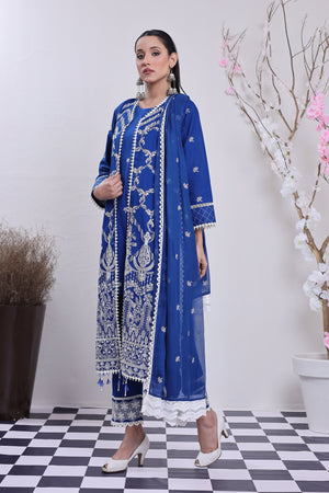2199 - Ink Blue Embroidered 3-Piece Cotton Lawn Suit – Elegant Summer Wear