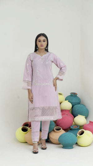 2202 Light Pink– Cotton lawn Embroidered 2-Piece Suit – Elegant Summer Wear