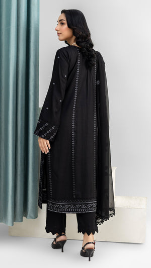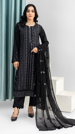 2221 - Black Embroidered 3-Piece Cotton Lawn Suit – Elegant Summer Wear