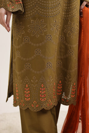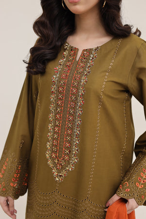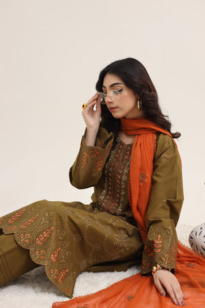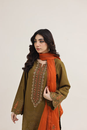 Add sophistication to your summer collection with this tobacco embroidered 3-piece Cotton lawn suit, designed to offer both elegance and comfort. The rich tobacco shade and intricate embroidery create a stylish and timeless look for any occasion.