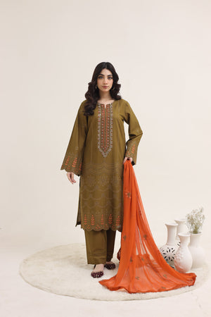 2223 - Tobacco Embroidered 3-Piece Cotton Lawn Suit – Elegant Summer Wear