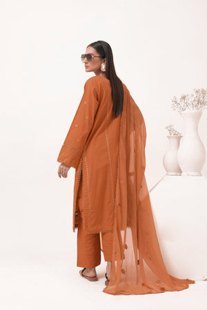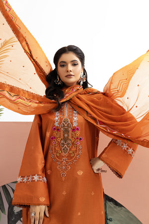 2224 - Orange Embroidered 3-Piece Cotton Lawn Suit – Elegant Summer Wear
