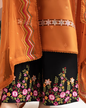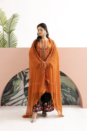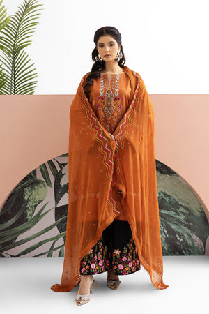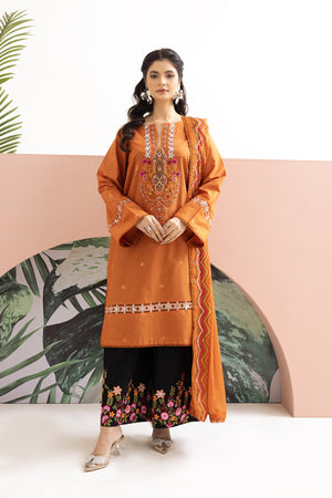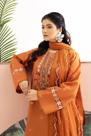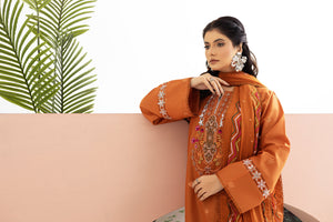 Brighten up your summer wardrobe with this orange embroidered 3-piece Cotton lawn suit, designed for both elegance and comfort. The vibrant orange hue and delicate embroidery add a fresh and sophisticated touch to your summer style.