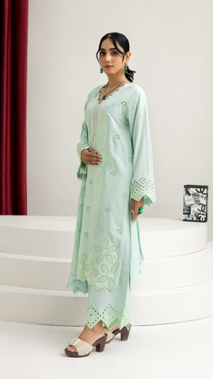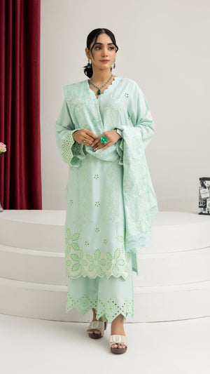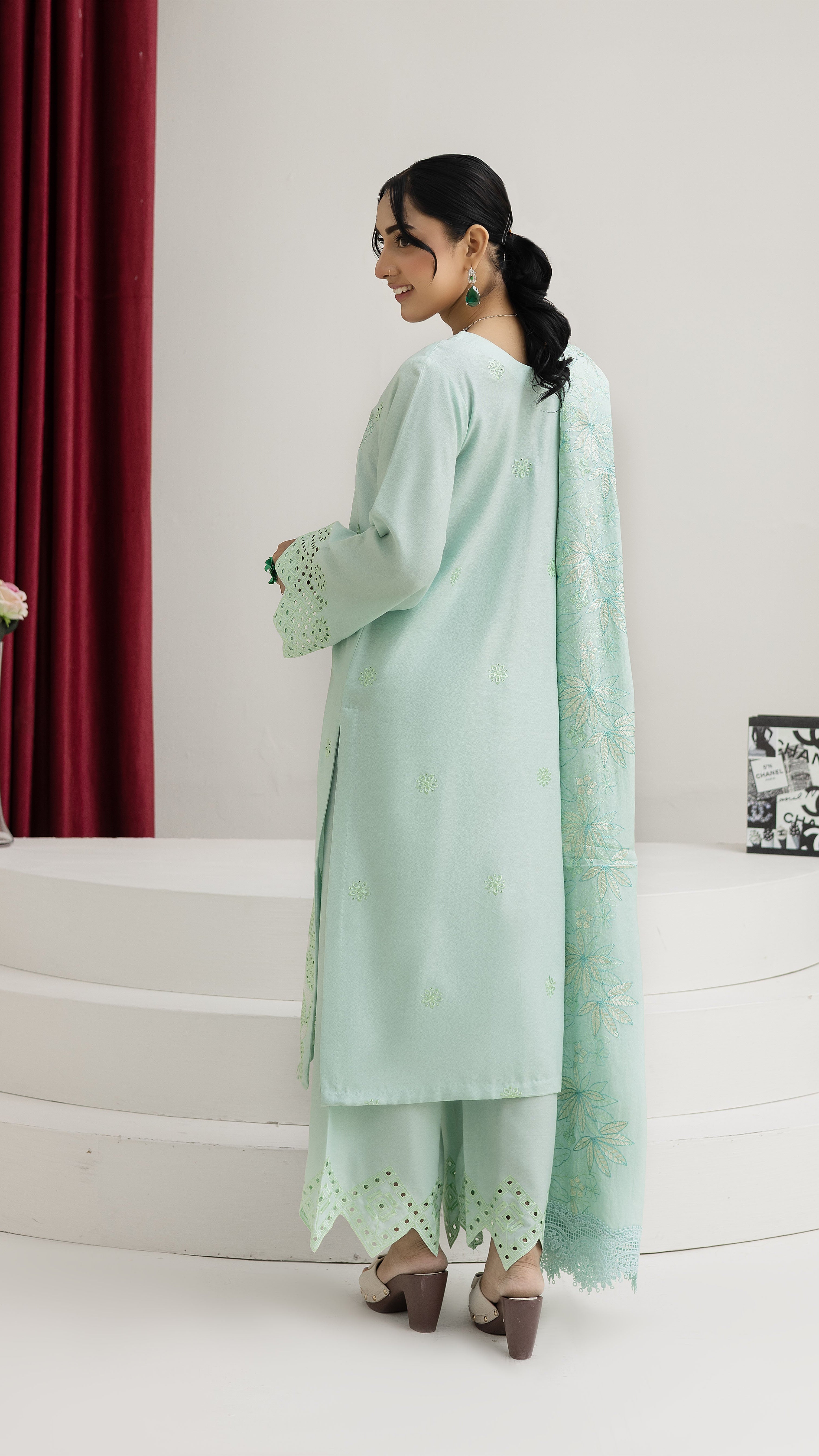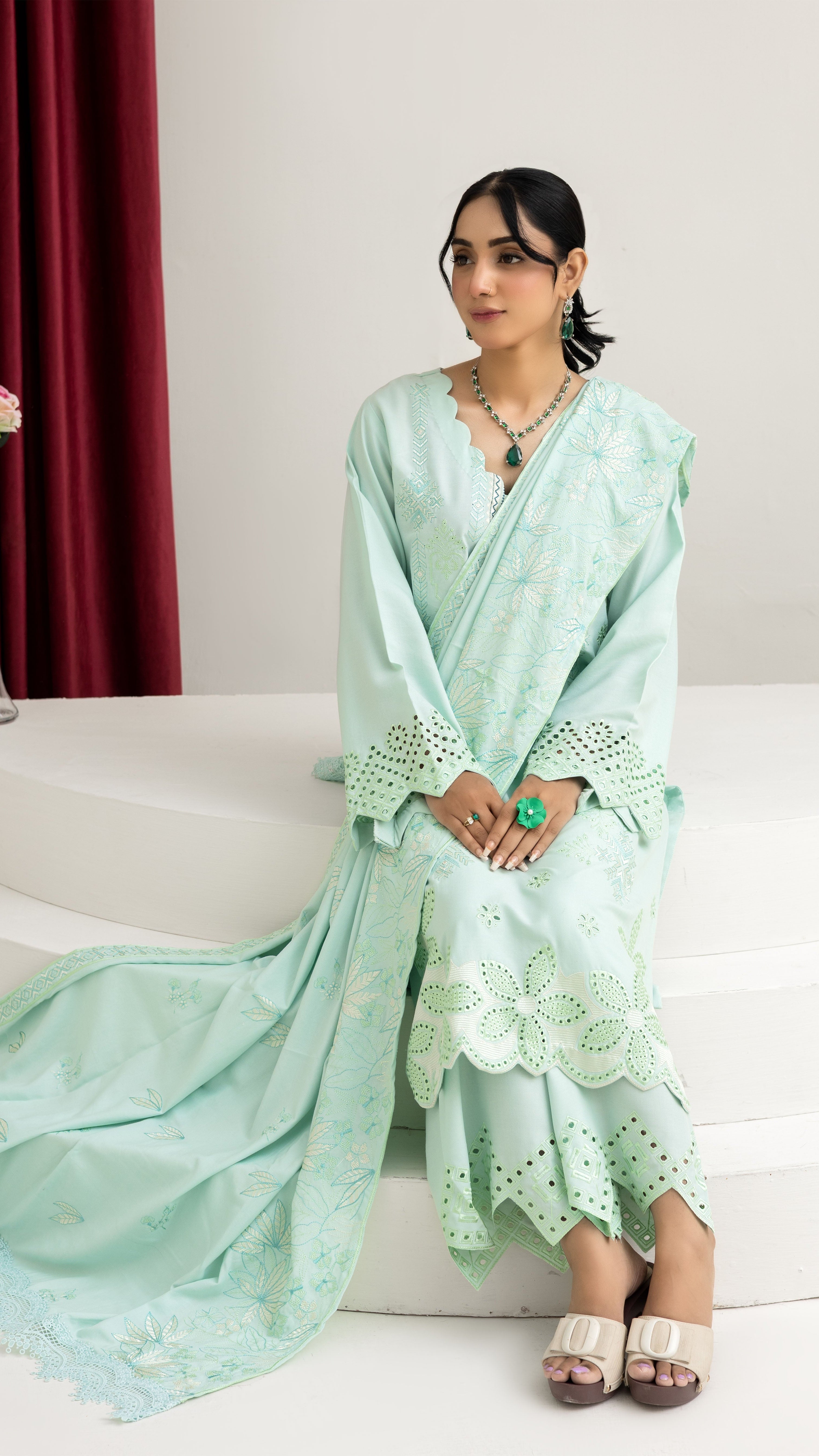 Add a soft, graceful touch to your wardrobe with this Angori embroidered 3-piece Dhanak suit, designed for elegance and comfort. The soothing Angori shade, paired with intricate floral embroidery, creates a refreshing and feminine look perfect .