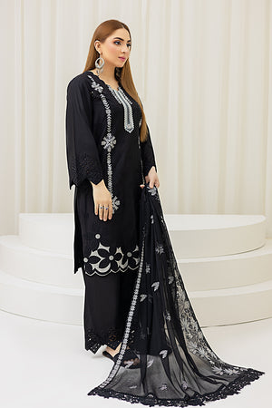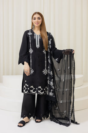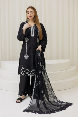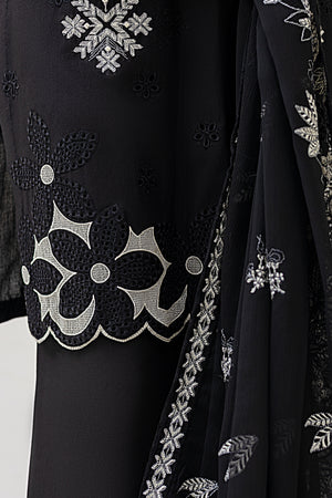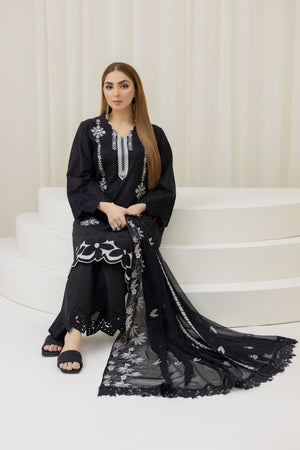 2226-Black Embroidered 3-Piece Cotton Lawn Suit – Elegant Summer Wear