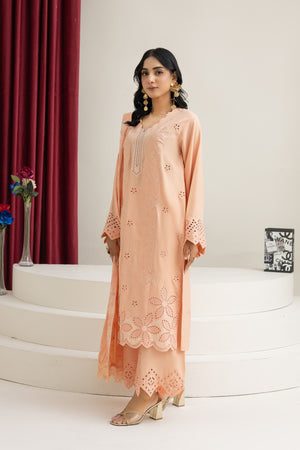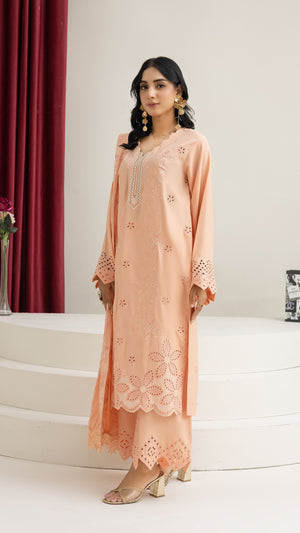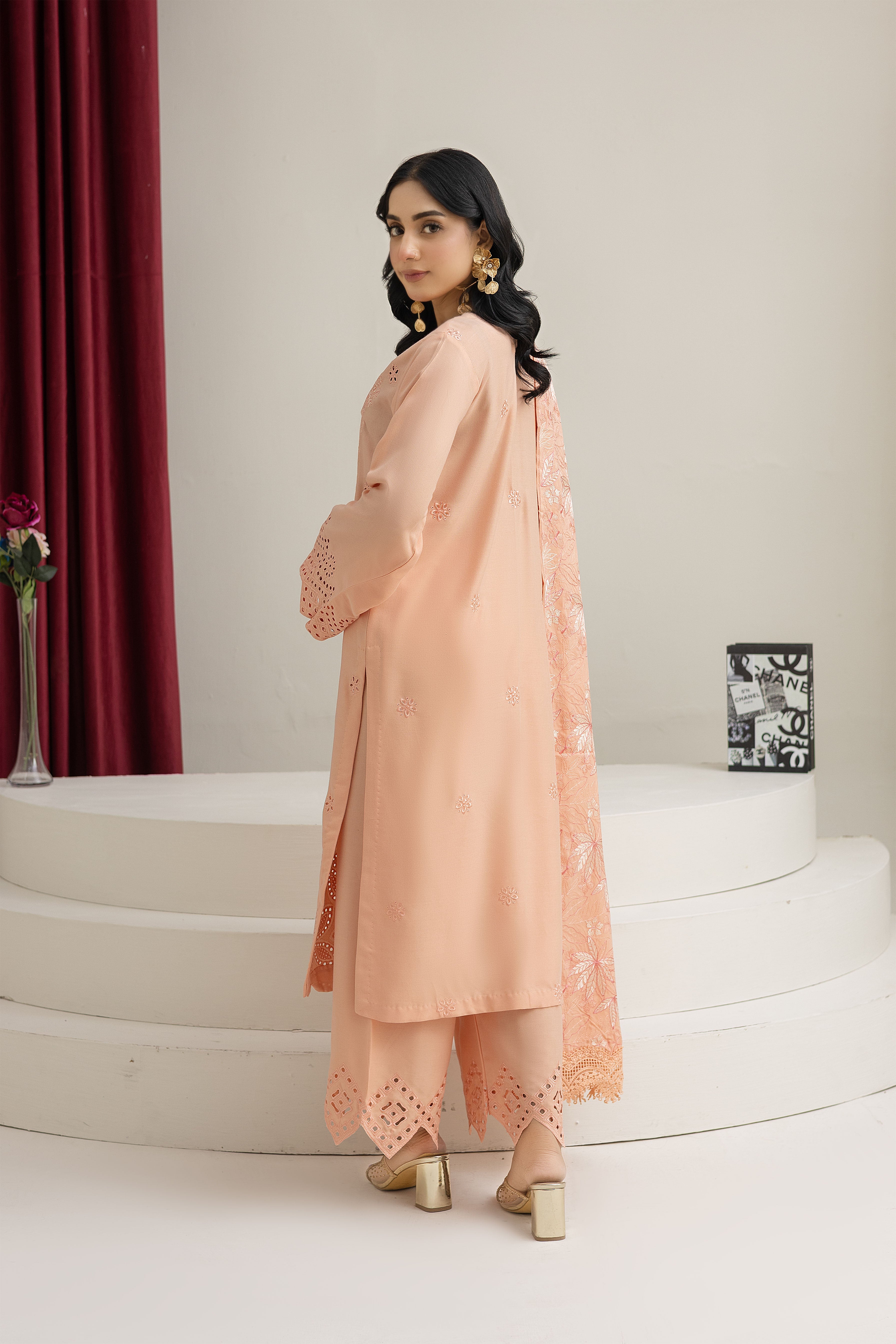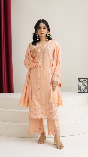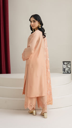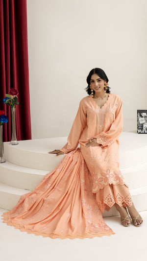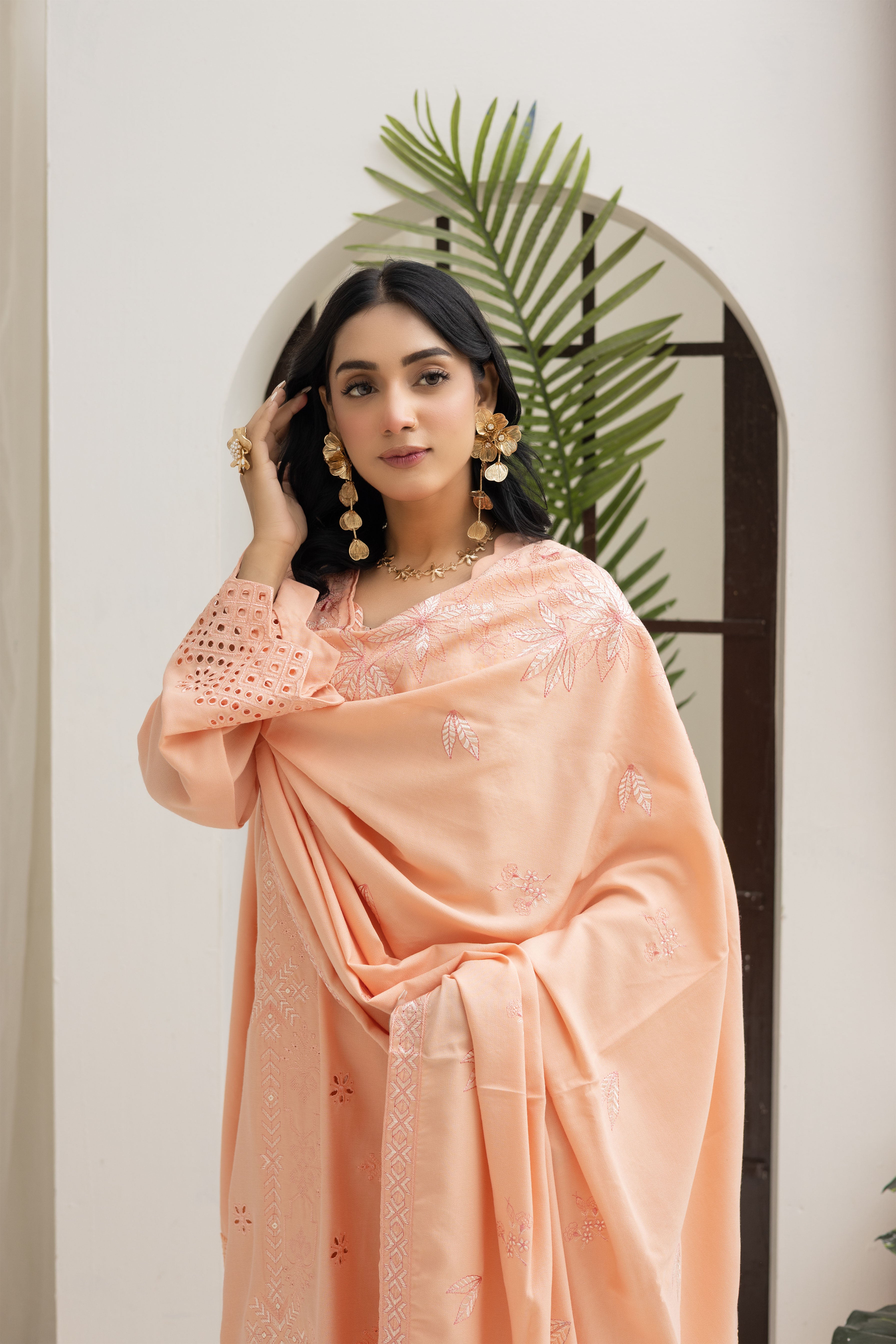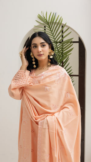2226- Peach Embroidered 3-Piece Dhanak Suit