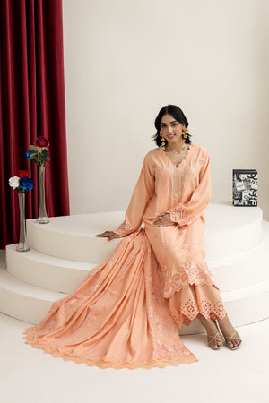 Add a soft, graceful touch to your wardrobe with this Peach embroidered 3-piece Dhanak suit, designed for elegance and comfort. The soothing Peach shade, paired with intricate floral embroidery, creates a refreshing and feminine look perfect