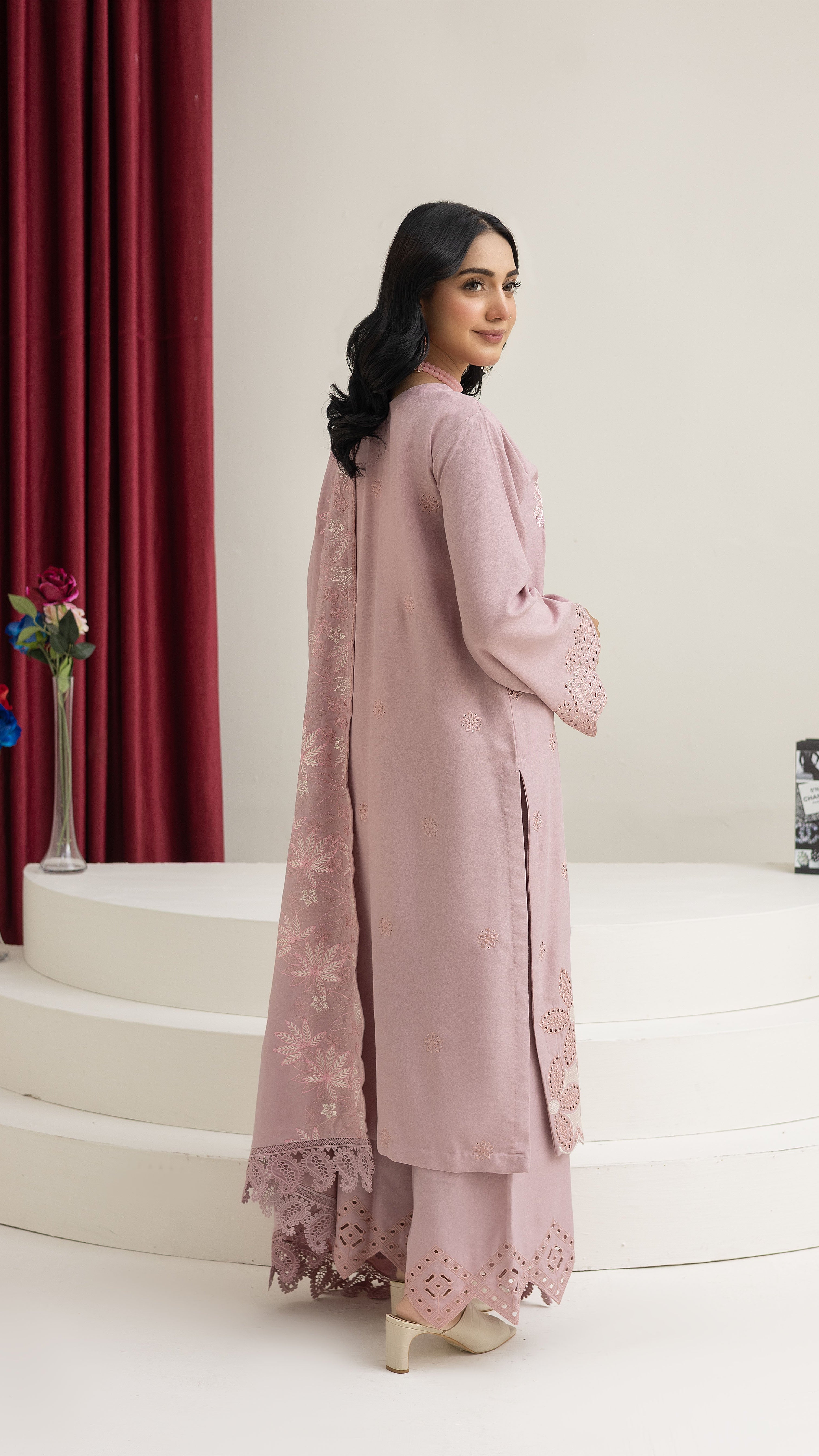 Add a soft, graceful touch to your wardrobe with this Piyazi embroidered 3-piece Dhanak suit, designed for elegance and comfort. The soothing Piyazi shade, paired with intricate floral embroidery, creates a refreshing and feminine look perfect