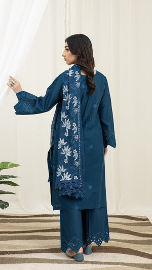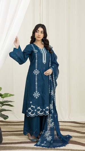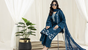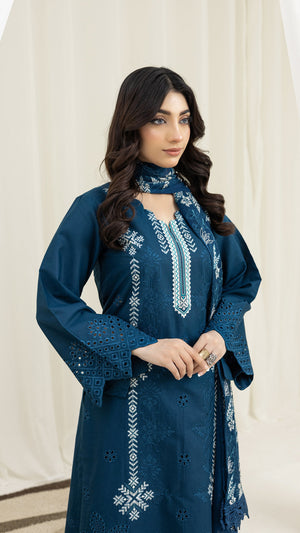 2226-Zinc Blue Embroidered 3-Piece Cotton Lawn Suit – Elegant Summer Wear