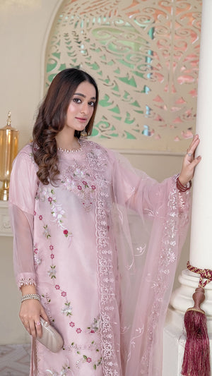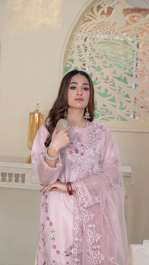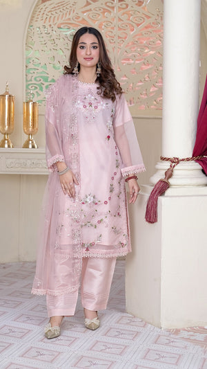 2232- Pastel Pink – 4PC Embellished Organza Kurta Set