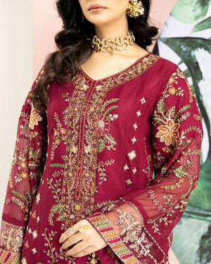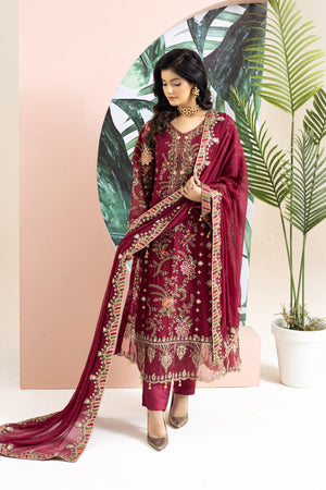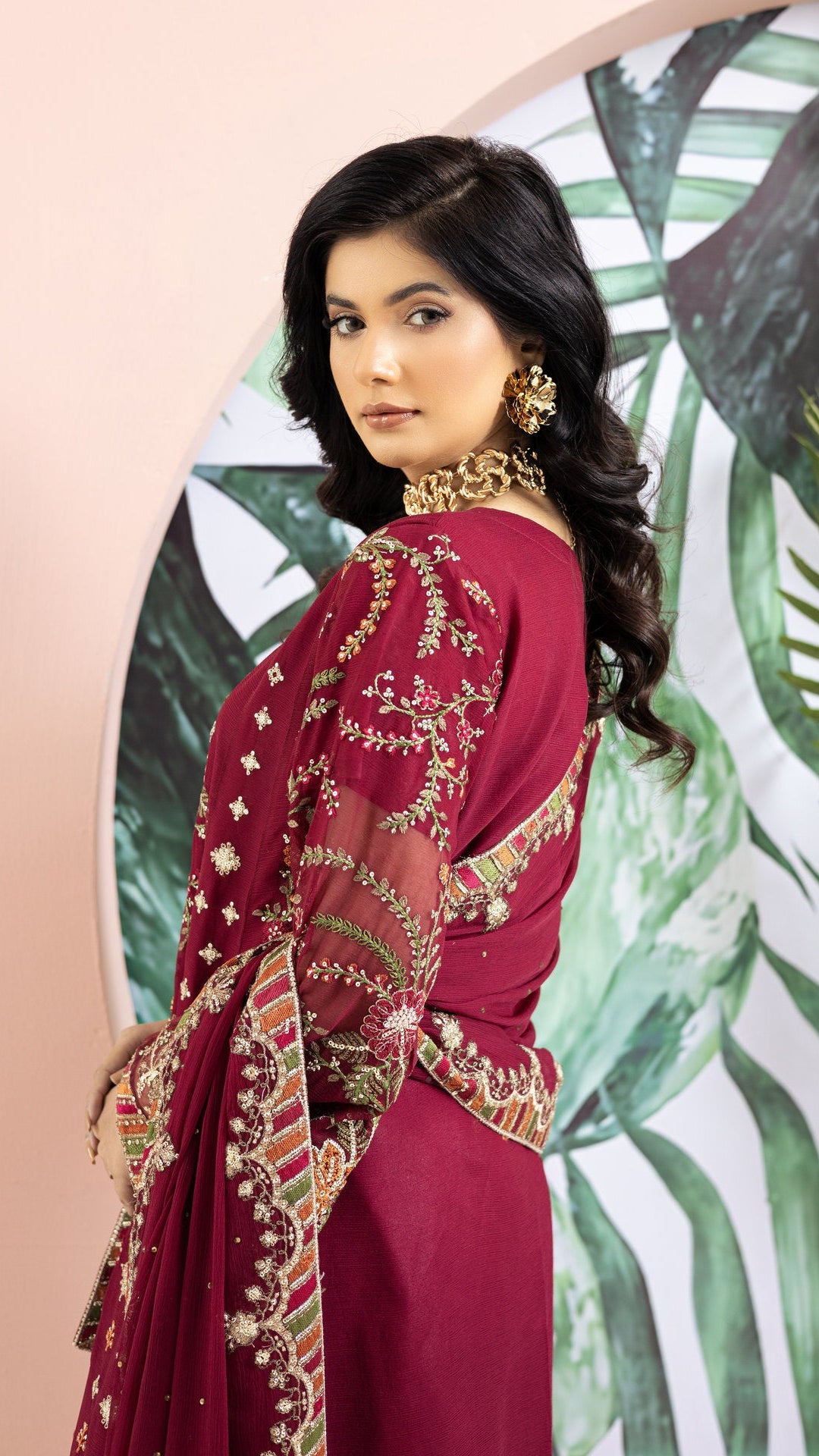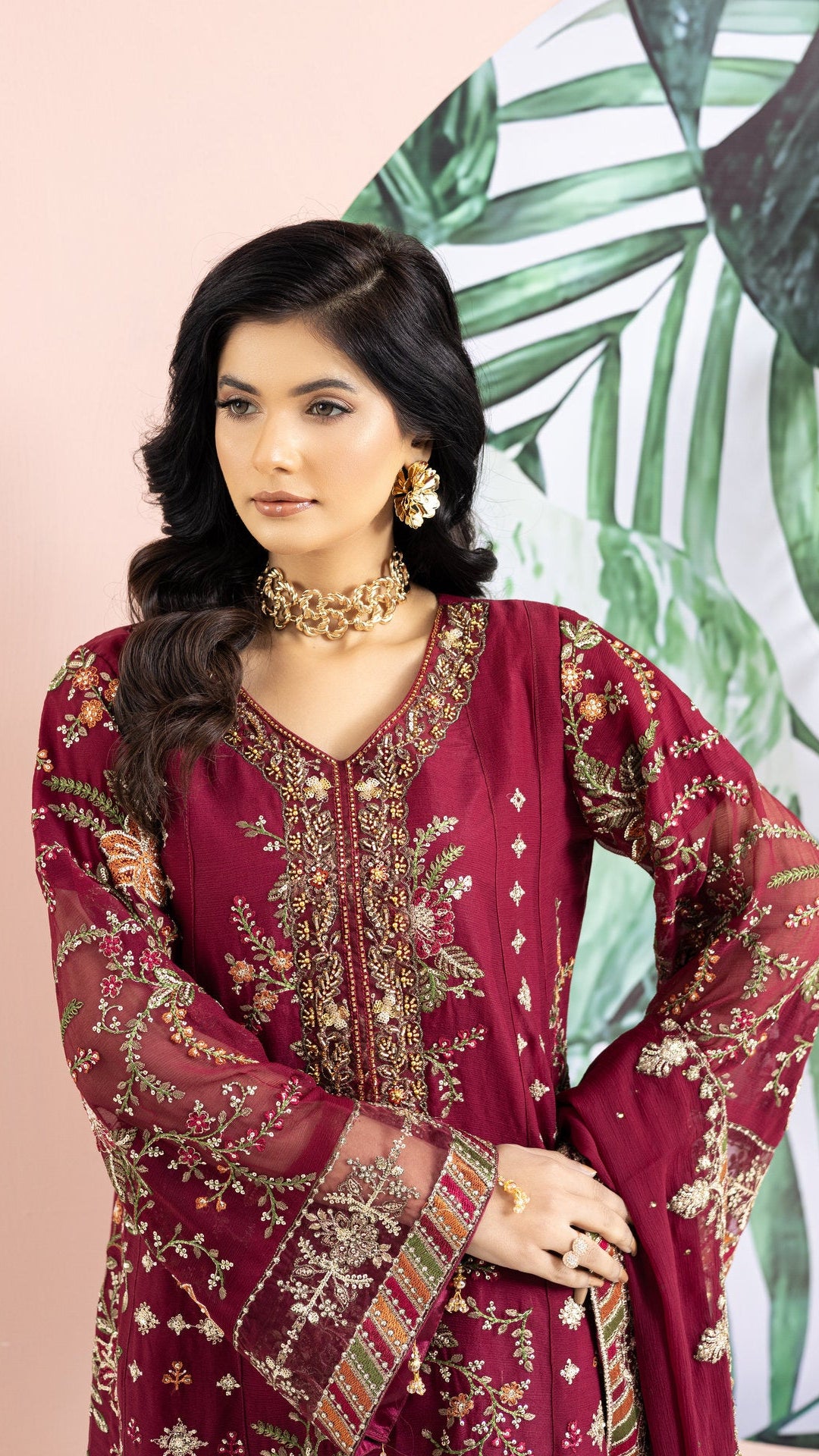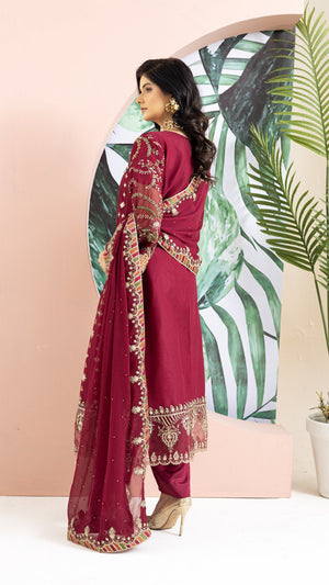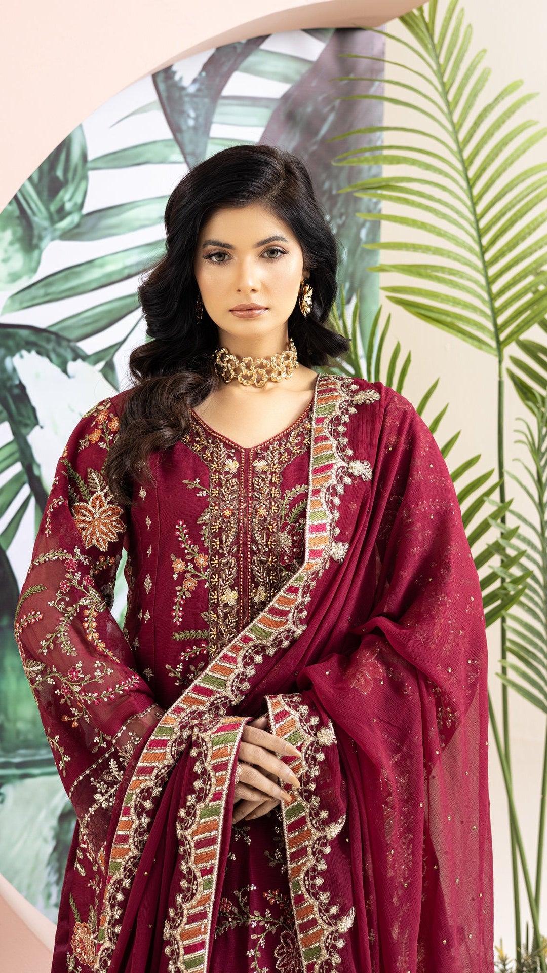 Add a vibrant, graceful touch to your wardrobe with this Hot Pink Chiffon embroidered 3-piece suit, designed to radiate elegance and charm. The bold yet feminine hot pink shade, complemented by delicate floral embroidery, creates a refreshing summer look that stands out at any gathering.