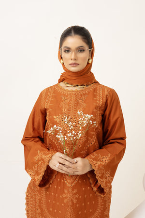2247-Orange Embroidered 3-Piece Cotton Lawn Suit – Elegant Summer Wear