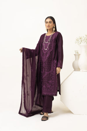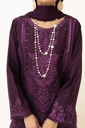 2247 - Purple Embroidered 3-Piece Cotton Lawn Suit – Elegant Summer Wear
