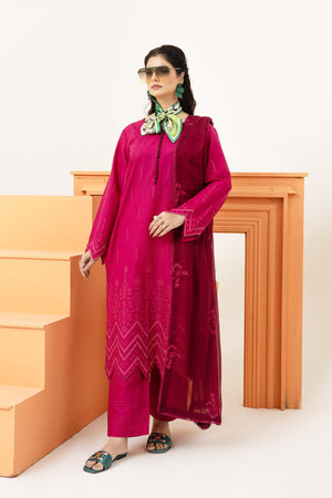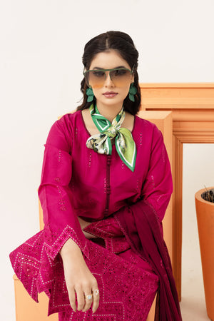 2258 - Hot Pink Embroidered 3-Piece Cotton Lawn Suit – Elegant Summer Wear