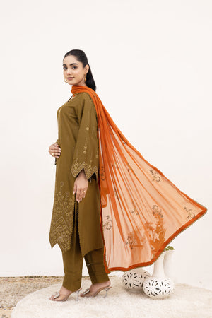 2258-Tobacco Embroidered 3-Piece Cotton Lawn Suit – Elegant Summer Wear