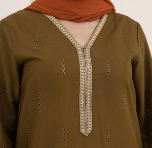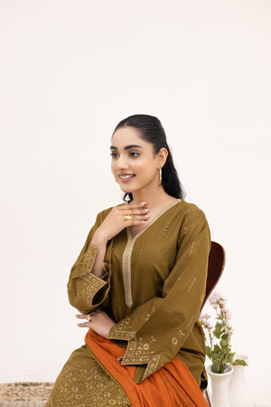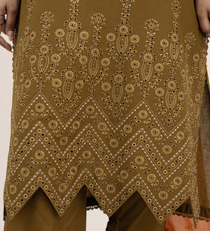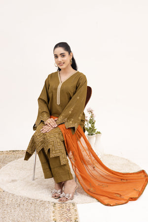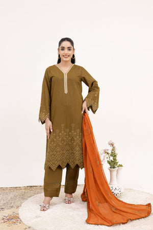 Bring a warm, earthy elegance to your wardrobe with this tobacoo embroidered 3-piece Cotton lawn suit, thoughtfully designed for both style and comfort. The rich tobacoo shade, paired with intricate floral embroidery, creates a grounded yet graceful look—ideal for refined summer gatherings.