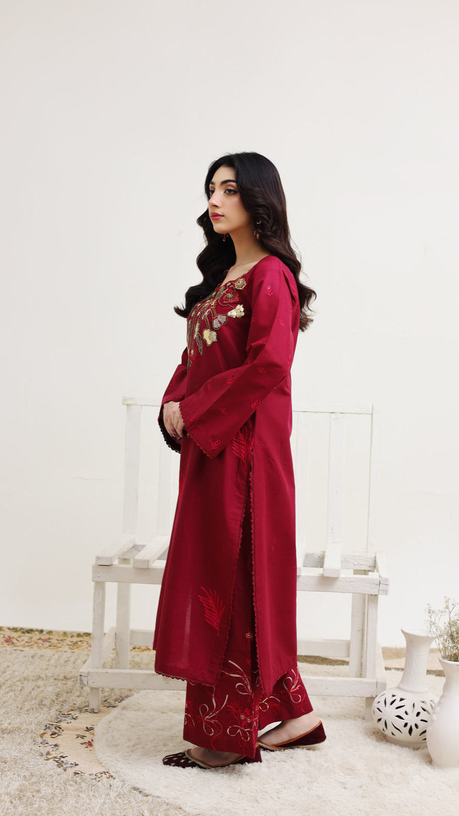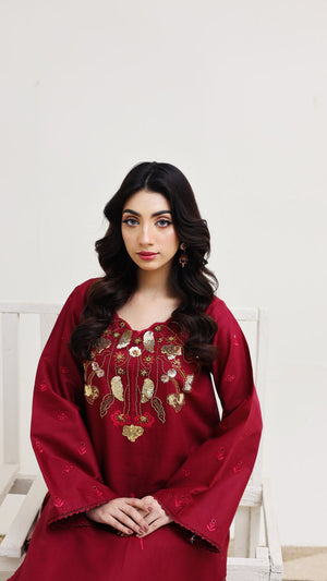Add a soft, graceful touch to your wardrobe with this Red-Maroon embroidered 2-piece Dhanak suit, crafted for elegance and everyday comfort. The soothing Red tone, enhanced with intricate floral embroidery, brings a refreshing and feminine charm—perfect for upcoming days.