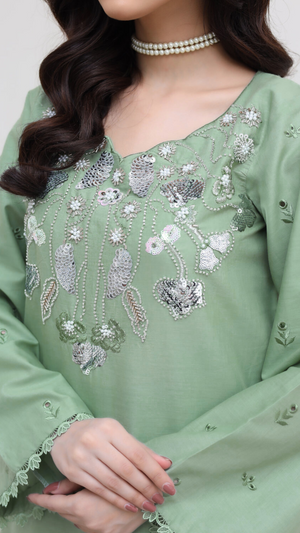2263-Sea Green Embroidered 2-Piece Cotton Lawn Suit