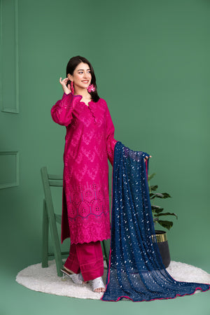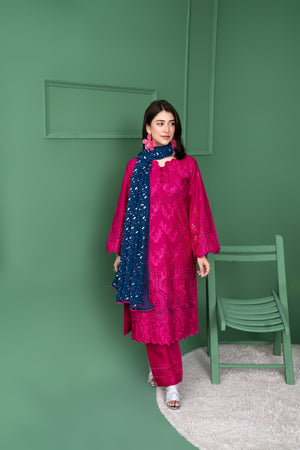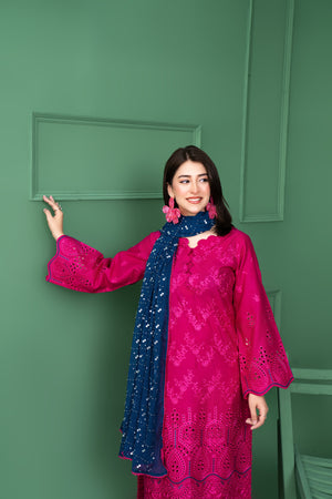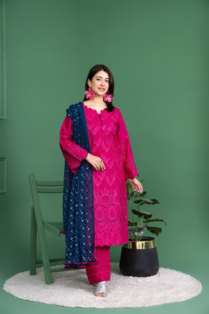 2266-Shocking Pink Embroidered 3-Piece Lawn Suit – Elegant Summer Wear