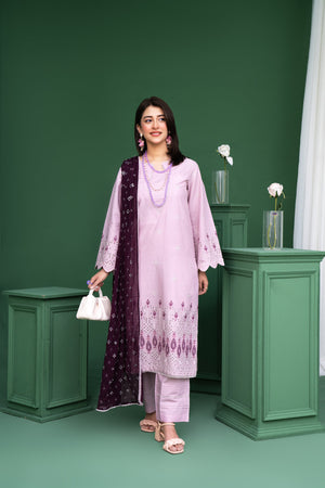 2267-Pink Embroidered 3-Piece Lawn Suit – Elegant Summer Wear