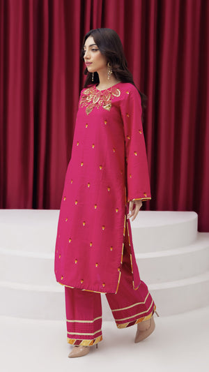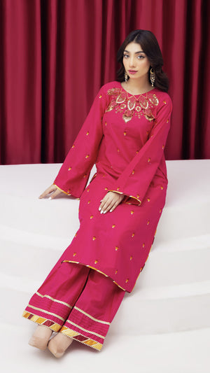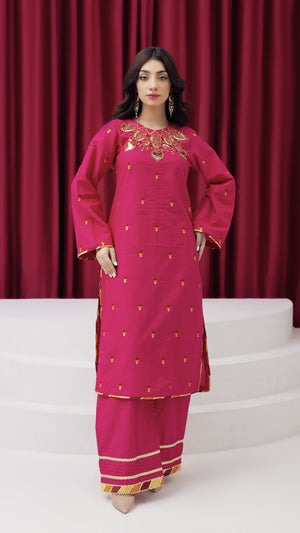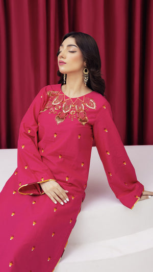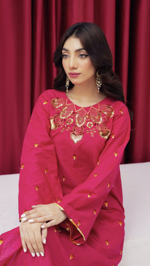 2273-Shocking Pink Embroidered 2-Piece Lawn Suit – Elegant Summer Wear