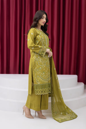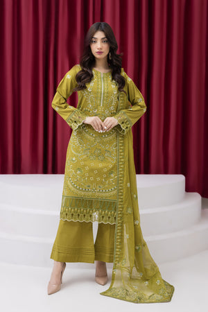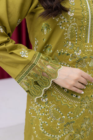 2275-Parrot Green 3-Piece Cotton Lawn Suit Embroidered – Elegant Summer Wear