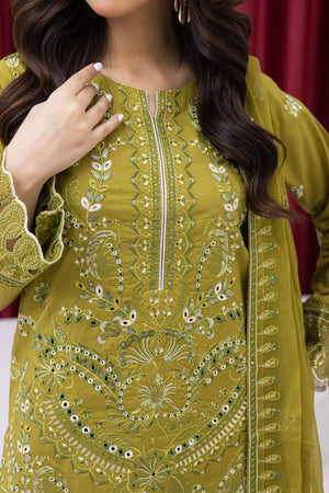 Step into summer with grace and confidence in this Parrot Green 3-piece embroidered lawn suit. The vibrant green tone adds a fresh, lively energy to your wardrobe, while the intricate embroidery on the shirt brings elegance and feminine charm.