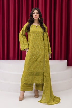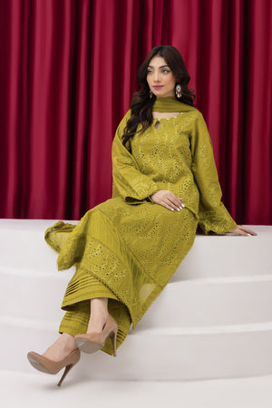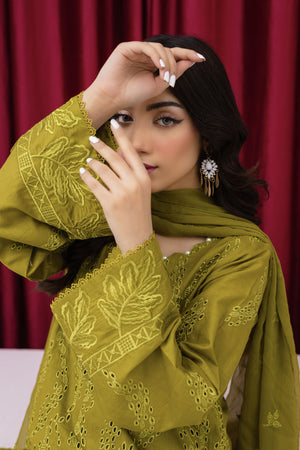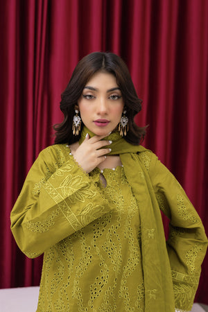 2277-Parrot Green Embroidered 3-Piece Cotton Lawn Suit