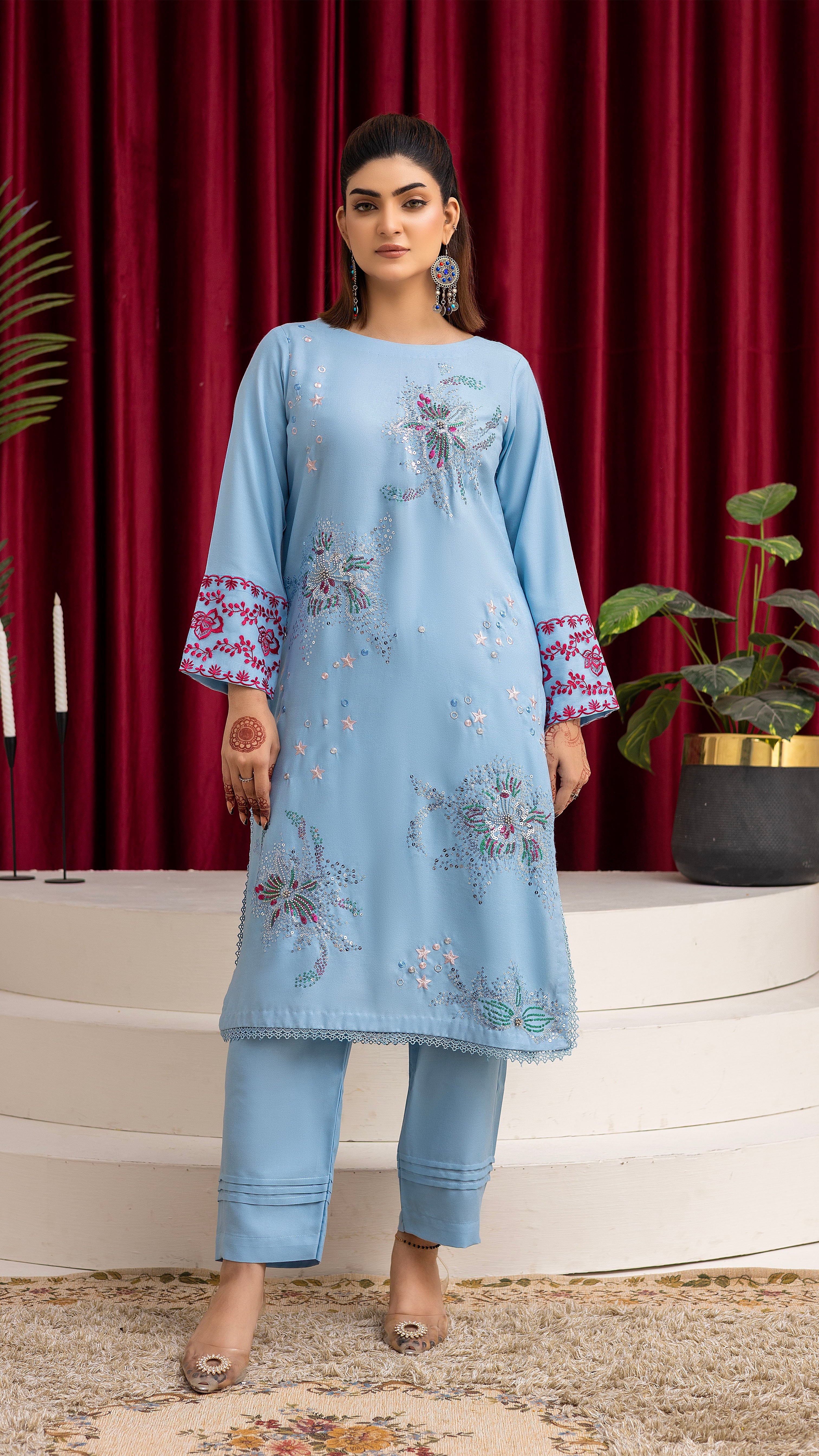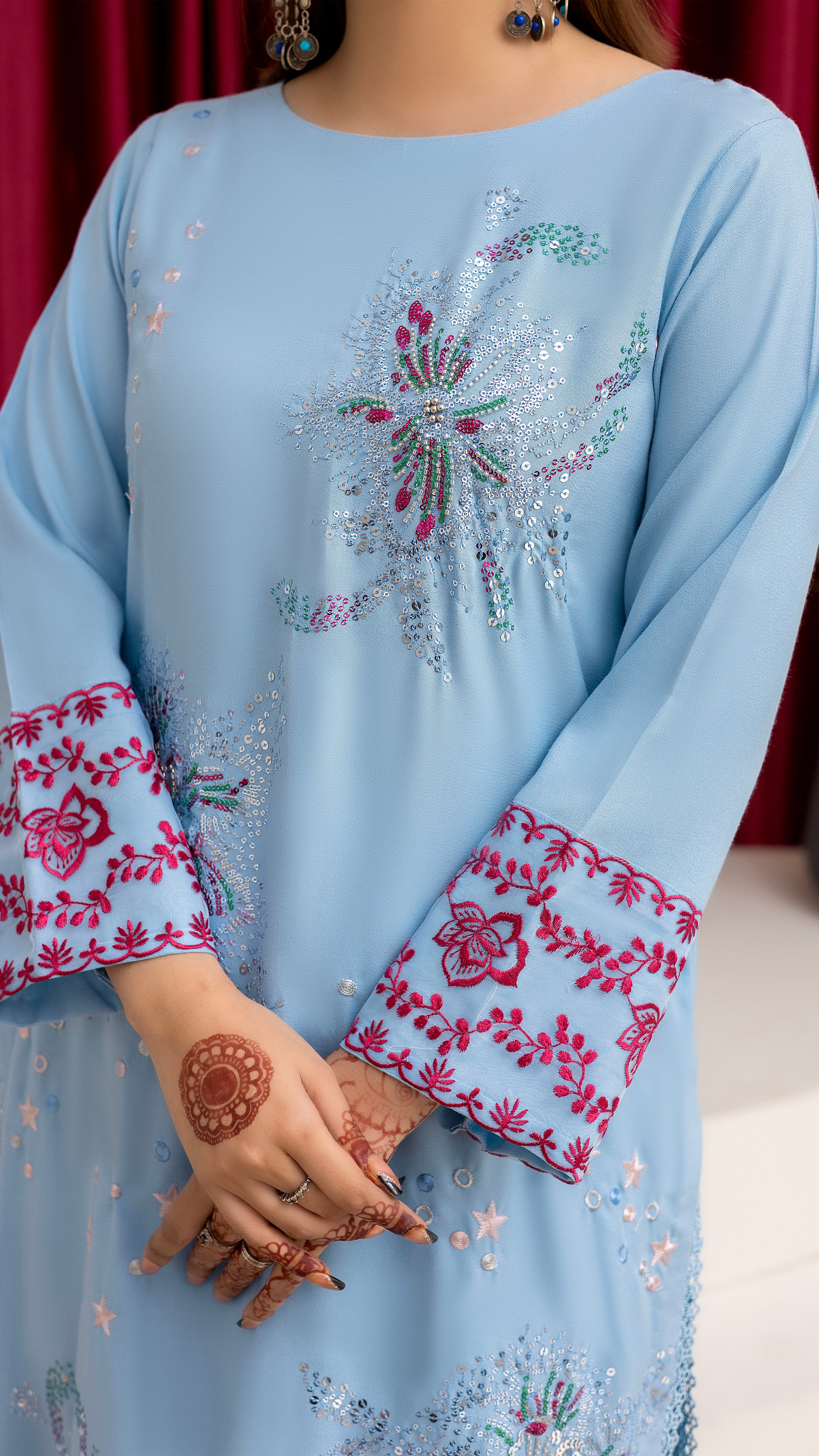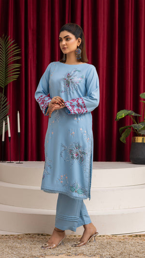 2284-Sky Blue Embroidered 2-Piece Dhanak Suit
