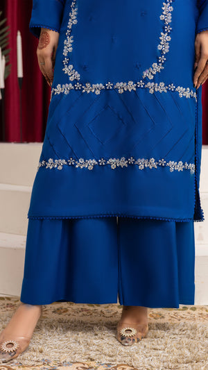 2286-Ink Blue Embroidered 2-Piece Dhanak Suit