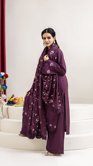 2287-Purple Embroidered 3-Piece Dhanak Suit