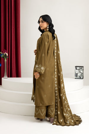 2287-Tobacoo Embroidered 3-Piece Dhanak Suit