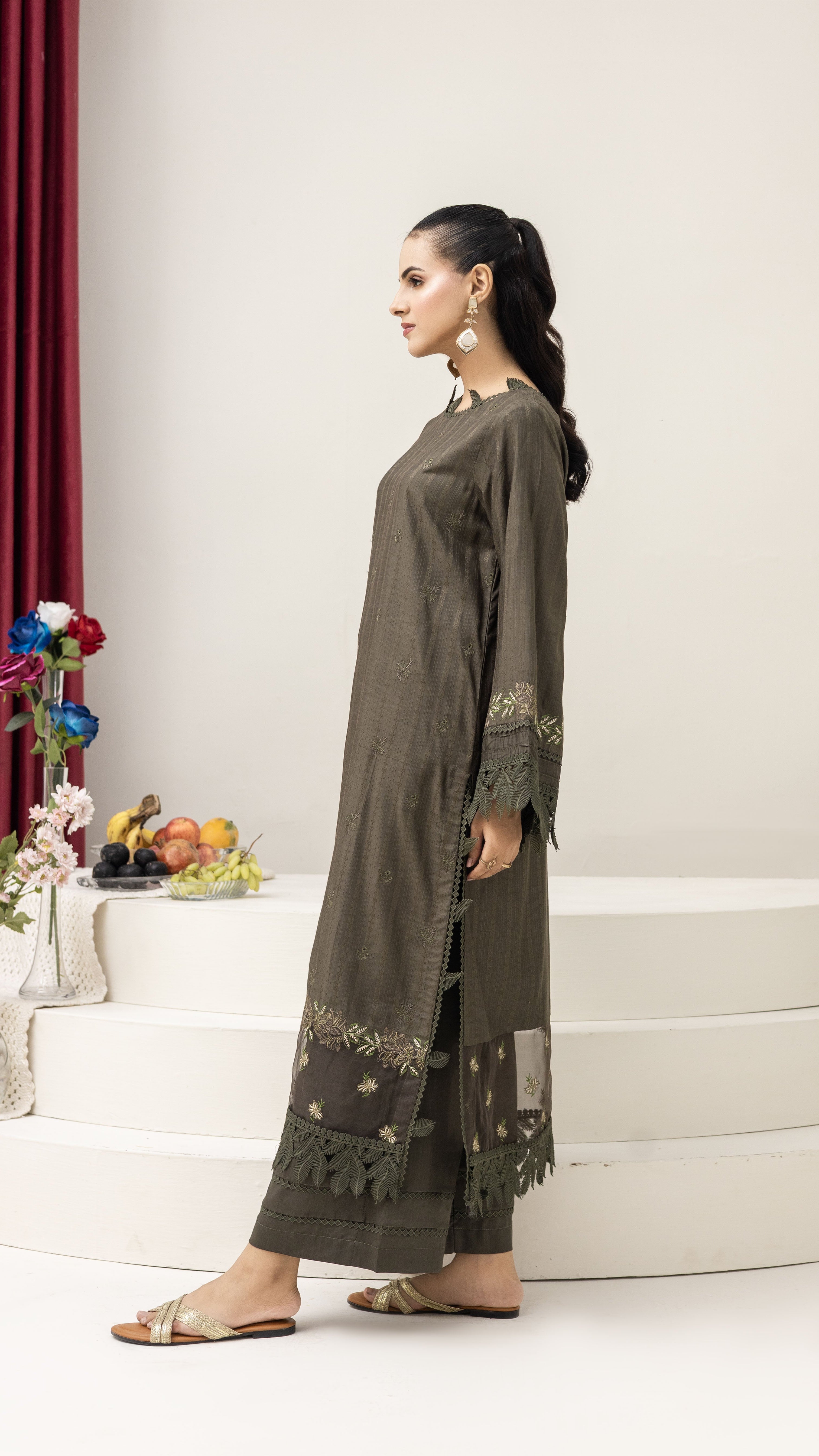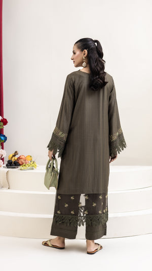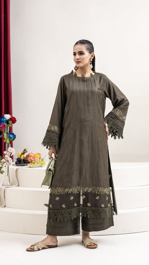 2290-2-Piece Tobacoo Embroidered Viscose Suit