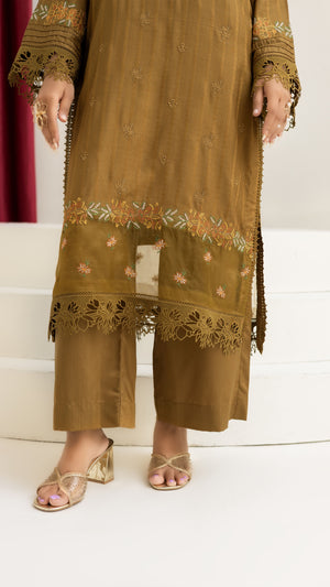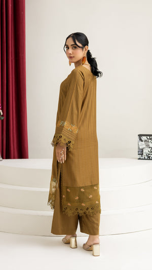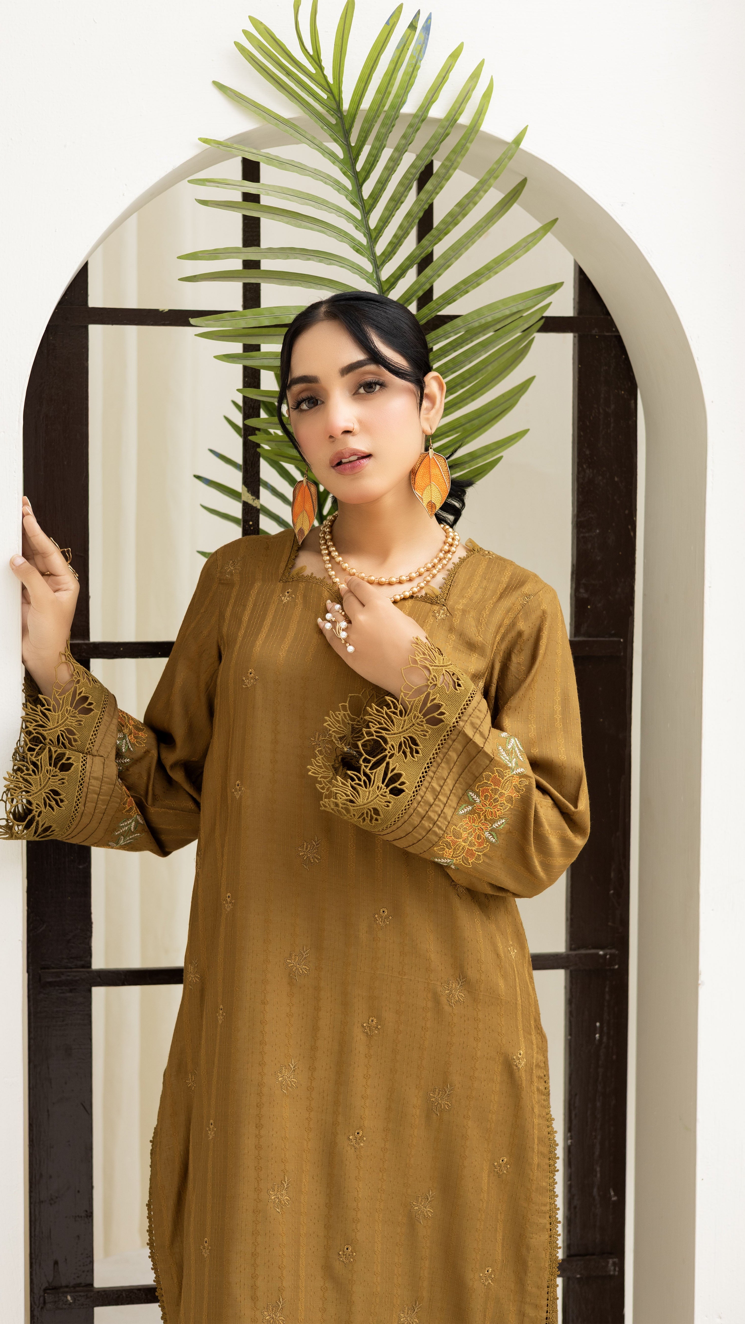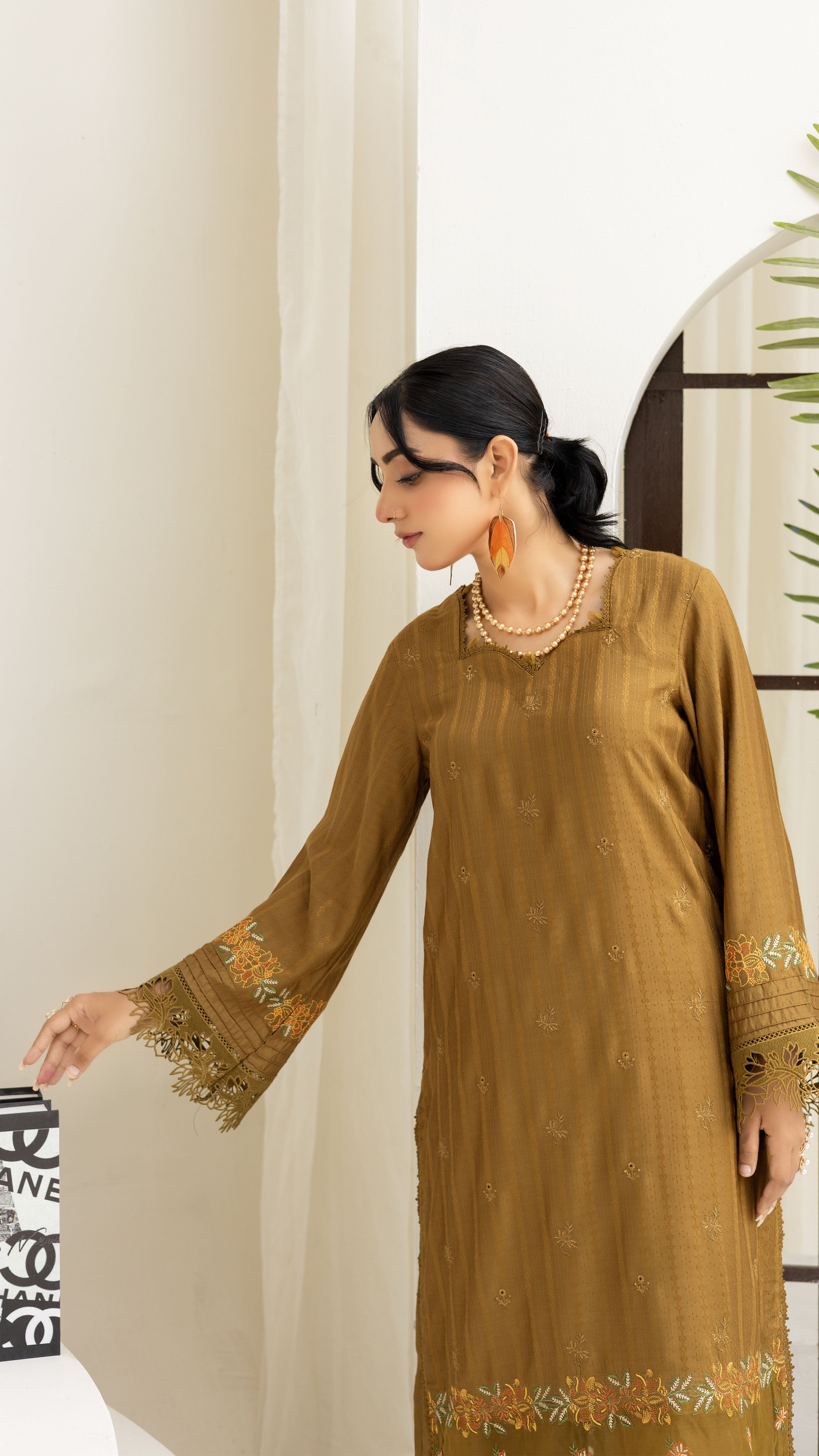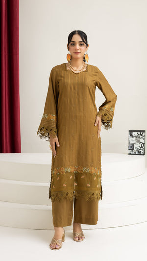 2290-2-Piece Tobacoo Embroidered Viscose Suit