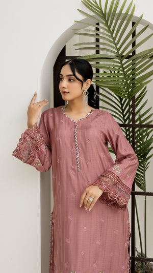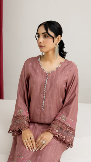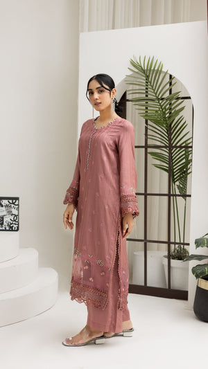 2290-2-Piece Tobacoo Embroidered Viscose Suit