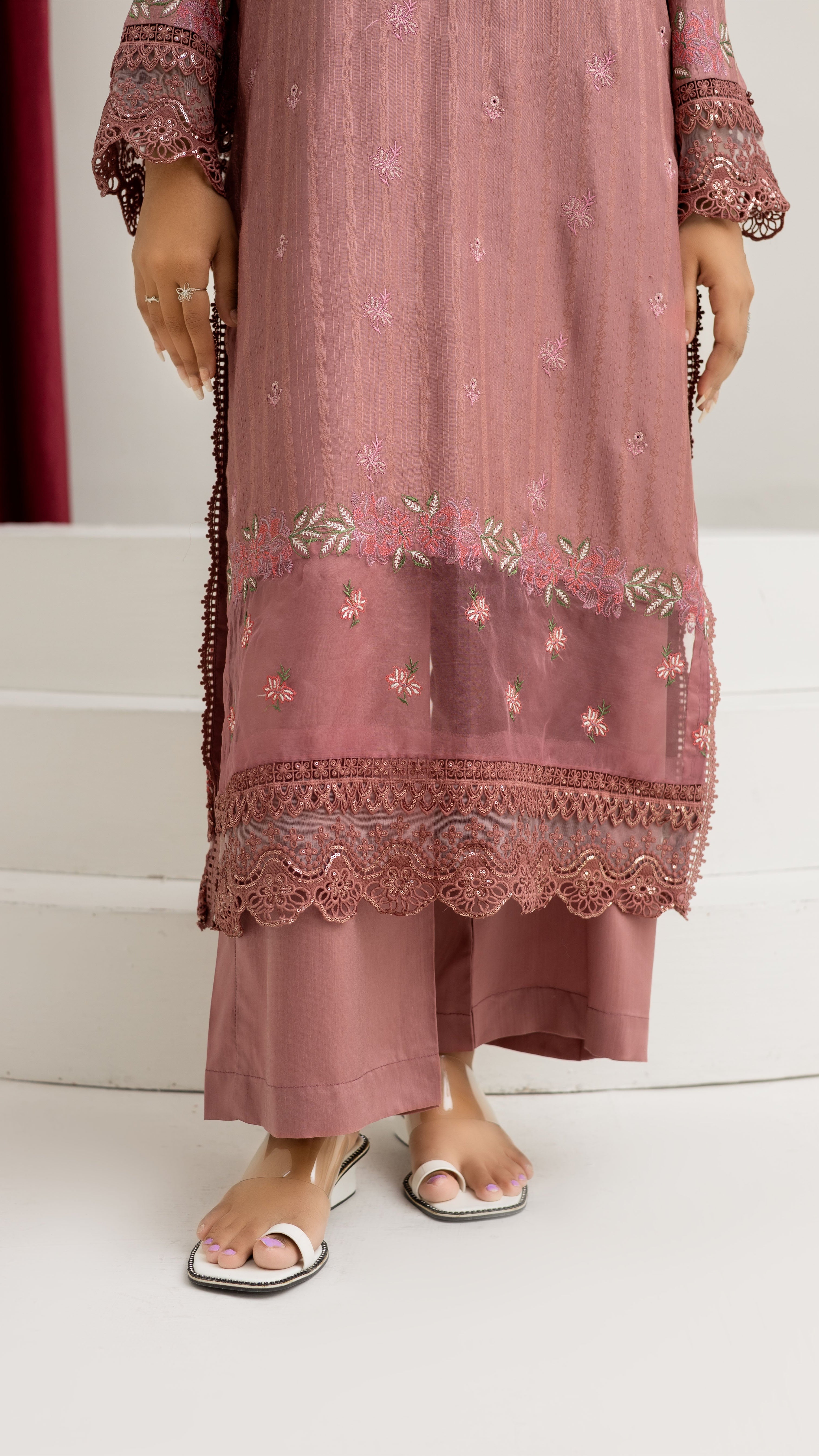Make a bold statement with this 2-Piece Piyazi Viscose Embroidered Suit. Designed with premium fabric, the long shirt is adorned with delicate thread embroidery and intricate lacework on the sleeves and hemline, creating a perfect blend of tradition and elegance. The embroidered detailing along the neckline adds charm, while the matching wide-leg trousers ensure a graceful finish.