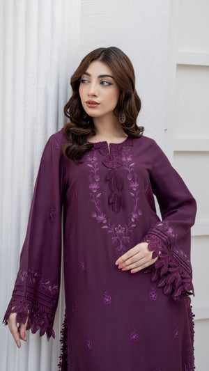 2292-2-Piece Purple Embroidered Dhanak Suit