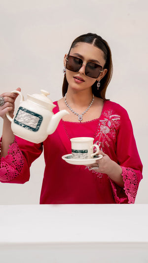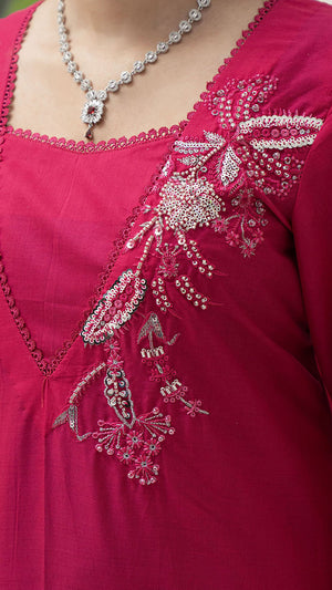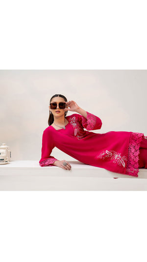 Make a refined style statement with this elegant Shocking Pink embroidered 2-piece suit, designed for timeless sophistication and effortless grace. The Sharp Pink base is beautifully enhanced with delicate silver-toned embroidery, creating a striking contrast that exudes understated luxury