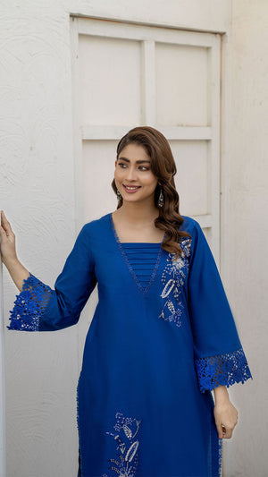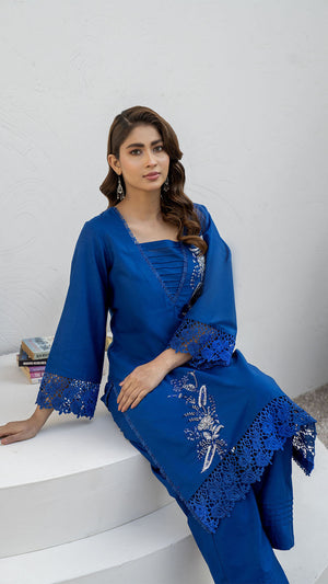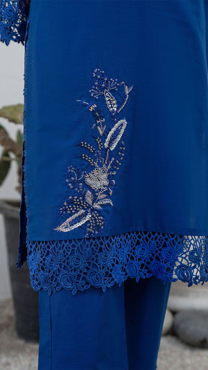 Make a refined style statement with this elegant ink Blue embroidered 2-piece suit, designed for timeless sophistication and effortless grace. The Deep Blue base is beautifully enhanced with delicate silver-toned embroidery, creating a striking contrast that exudes understated luxury