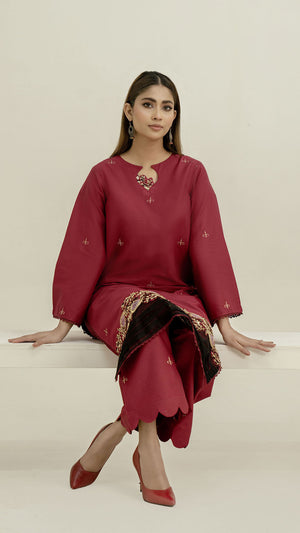 Add a refined touch of elegance to your wardrobe with this graceful Hot Pink 2-piece outfit, designed for timeless sophistication and everyday comfort. The soft Hot Pink hue exudes understated charm, while the delicate embroidery along the hemline adds a subtle yet luxurious appeal. Crafted from a smooth, breathable fabric, this ensemble effortlessly blends style