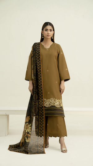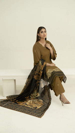 Add a refined touch of elegance to your wardrobe with this graceful Tobacoo 3-piece outfit, designed for timeless sophistication and everyday comfort. The soft Tobacoo hue exudes understated charm, while the delicate embroidery along the hemline adds a subtle yet luxurious appeal. Crafted from a smooth, breathable fabric, this ensemble effortlessly blends style